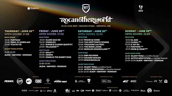 Rocanotherworld, festivalul care aduce oamenii împreună prin puterea valorilor comune, ia startul ediției cu numărul #10 în perioada 19–22 iunie 2025, în panoramica locație de la Gramma Wines – Bârnova, Iași. Reuniți de cele trei valori care ghidează festivalul, #becurious, #bedifferent și #beforothers, participanții sunt așteptați să se bucure de concerte live, DJ sets, activități recreative și educative, silent disco, sesiuni de yoga și meditație, o serie de dialoguri pe teme contemporane și multe alte activități conexe. Rocanotherworld este mai mult decât un festival de muzică – e un spațiu creativ, educativ și incluziv, inspirat de ideea de comunitate și responsabilitate socială.