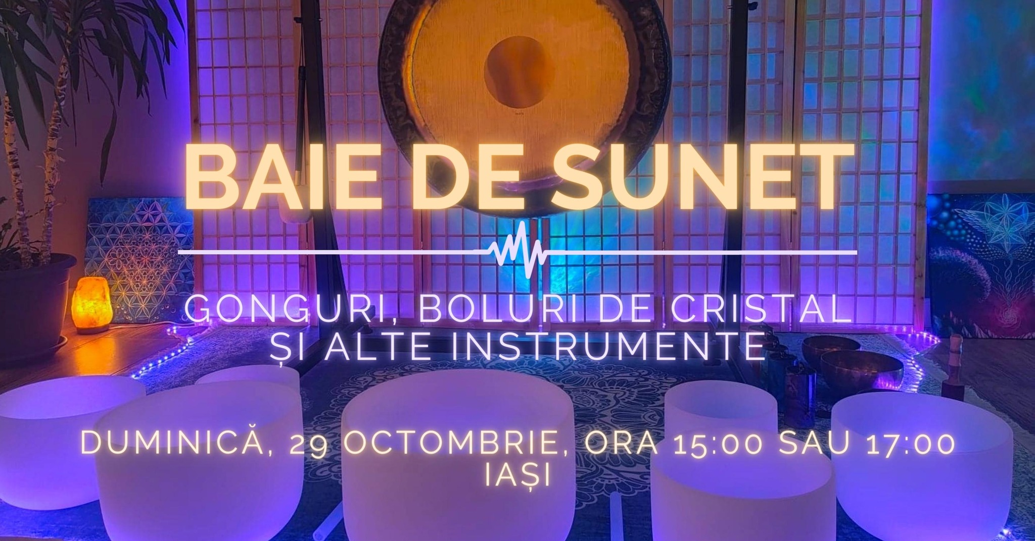 ? Vă invit, în Iași, la o călătorie de explorare a Sinelui, pe calea sunetelor gongurilor, bolurilor de cristal, bolurilor tibetane și ale altor instrumente, duminică, 29 octombrie, de la ora 15:00 sau de la ora 17:00.