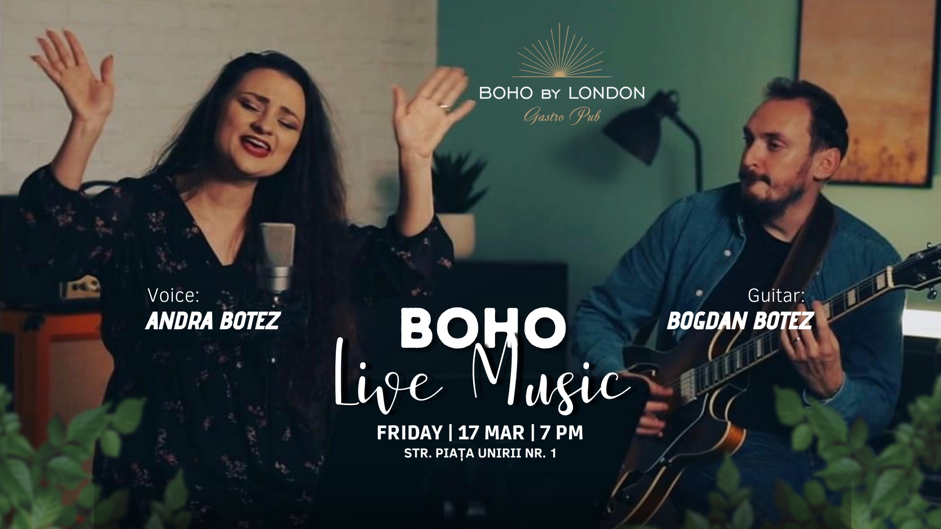 Boho - Live Music, vineri - 17 Martie! Andra Botez alături de Bogdan Botez, ne vor colora seara cu cele intense piese muzicale iar chimia dintre ei va fi ingredientul
