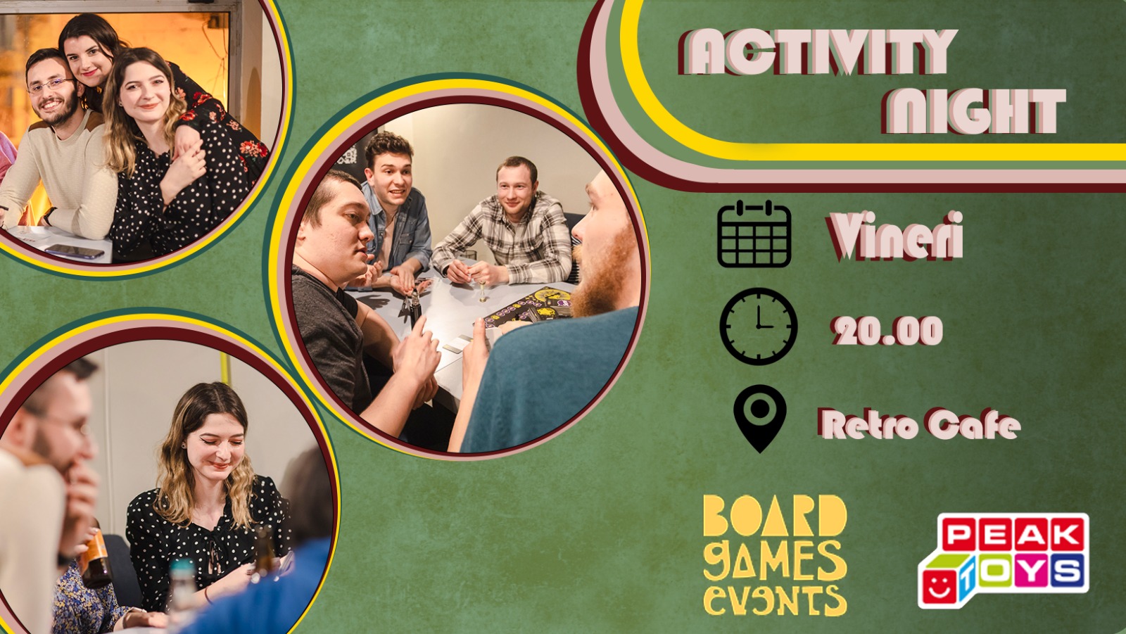 Vrei să te distrezi, să cunoști oameni noi și să faci ceva diferit? ? Te așteptăm VINERI seara de la ora 20:00, în Retro Cafe, la un SUPER eveniment marca Board Games Events ?