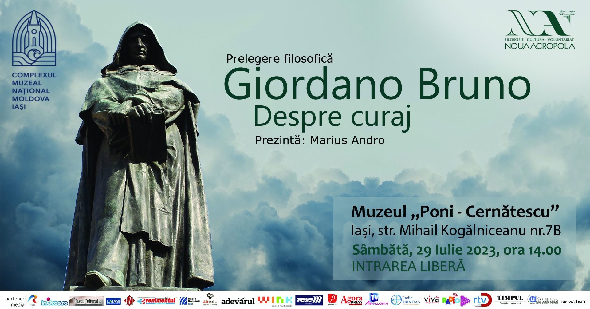 Asociația Culturală Noua Acropolă România, filiala Iași în colaborare cu Muzeul Științei și Tehnicii „Ștefan Procopiu” vă propun o nouă prelegere filosofică dedicată filosofului renascentist Giordano Bruno. Vom parcurge pe