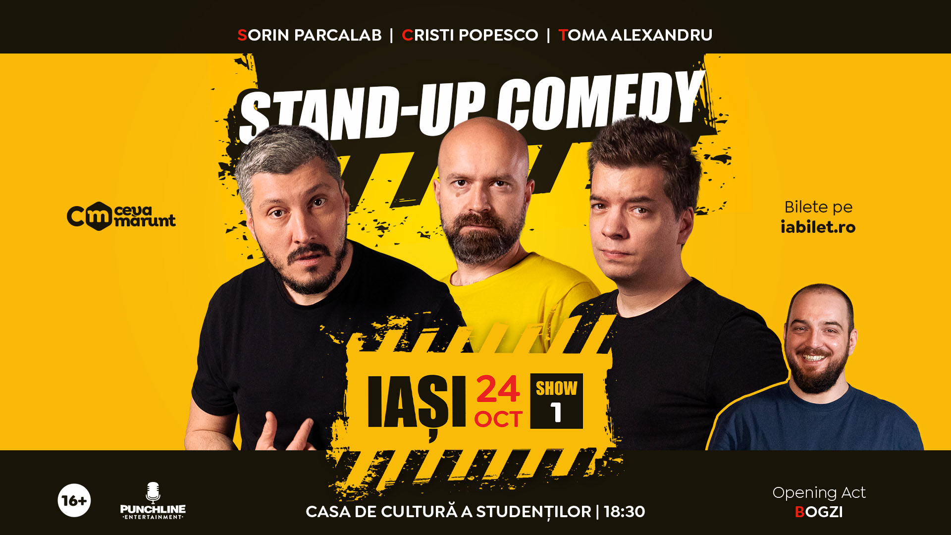 24oct6:30 pm8:30 pmIași | Stand-Up Comedy cu Sorin, Cristi și Toma (SHOW 1)
