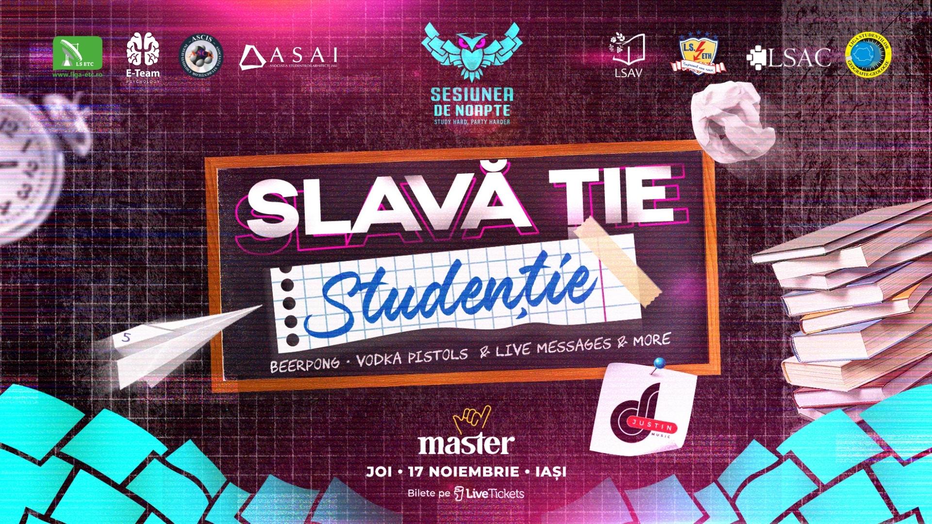 17noi9:00 pm9:00 pmSlavă ție, Studenție ▼ Sesiunea de noapte • Master Club, Iași