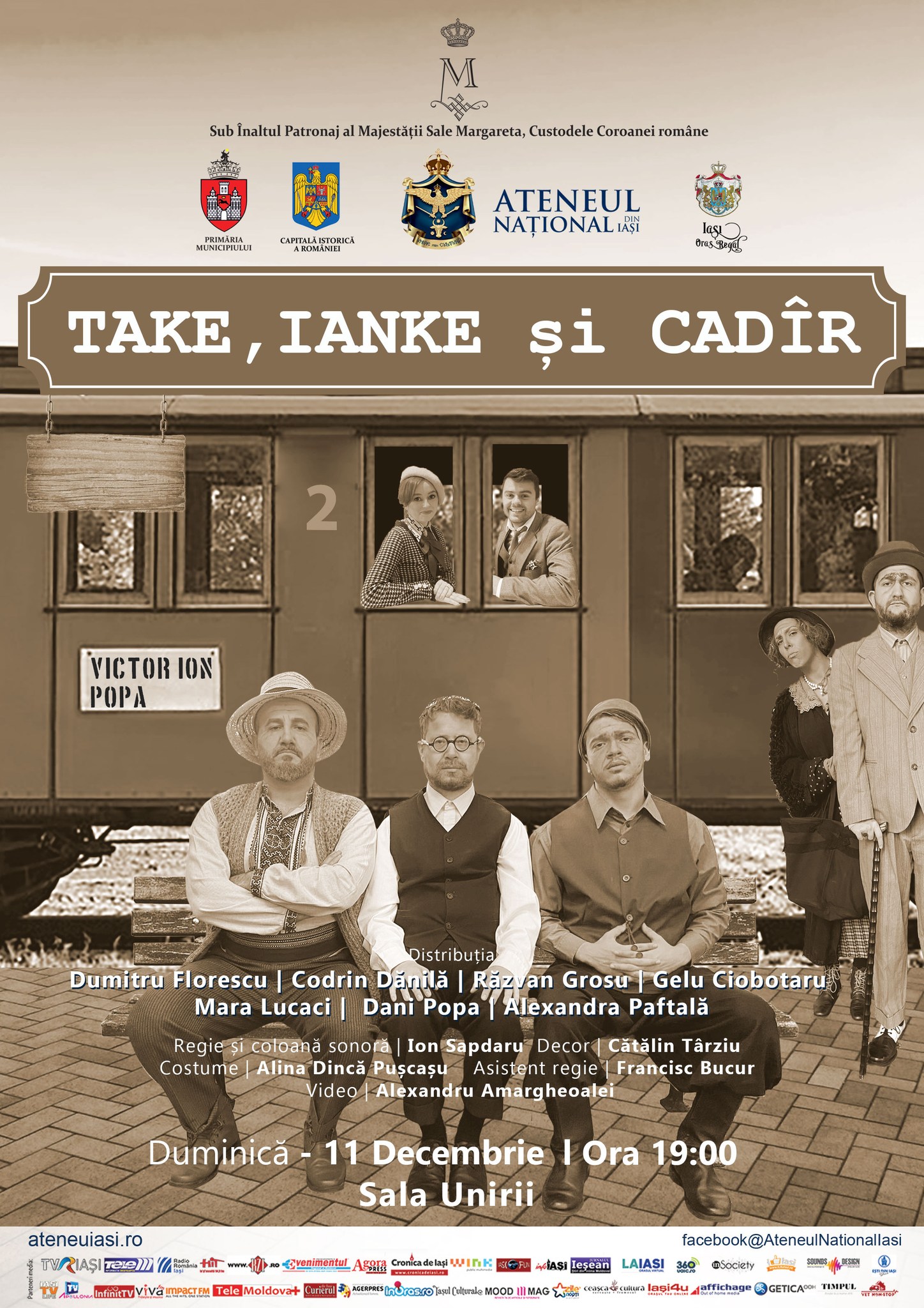 Duminică, 11 decembrie 2022, ora 19.00 vă invităm la spectacolul „Take, Ianke și Cadîr”, regia Ion Sapdaru, la Sala UNIRII!
